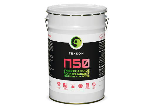 Геккон П50 - Высокопрочное полиуретановое однокомпонентное покрытие, которое наносится на основание многослойно, благодаря чему обеспечивается бесшовное высокопрочное, износостойкое и водонепроницаемое покрытие.